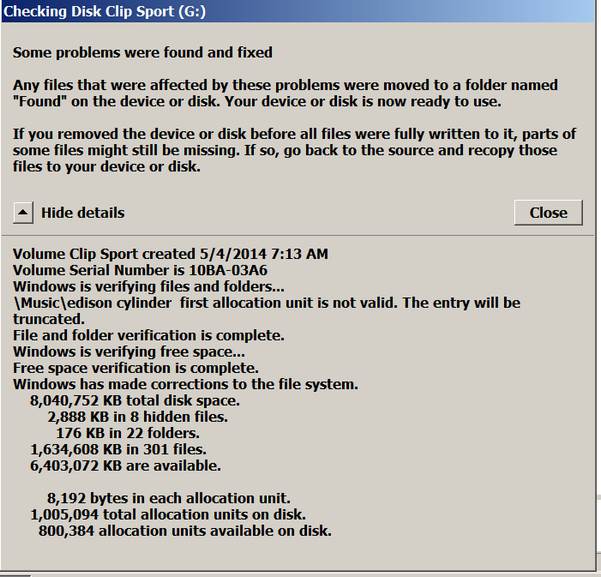 Went to Sandisk website & found update, downloaded & installed. After waiting for finish, tried to access folders, still ran into problems, catiwampus output. NOTE error popup below.